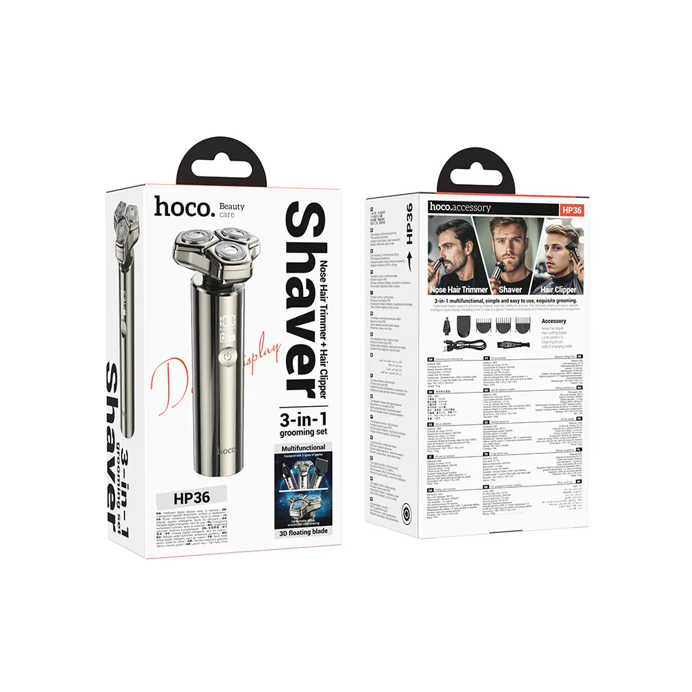 - Включени аксесоари: самобръсначка, тример за нос, тример за коса, четка за почистване, USB-A – USB-C кабел, защитен капак